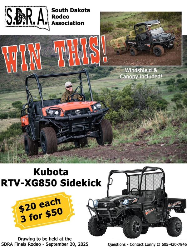 Please contact Penny at 605-638-0757 or sdrarodeo@gmail.com to get your tickets to SELL. Tickets can be purchased from any SDRA Member or by contacting Penny as well.